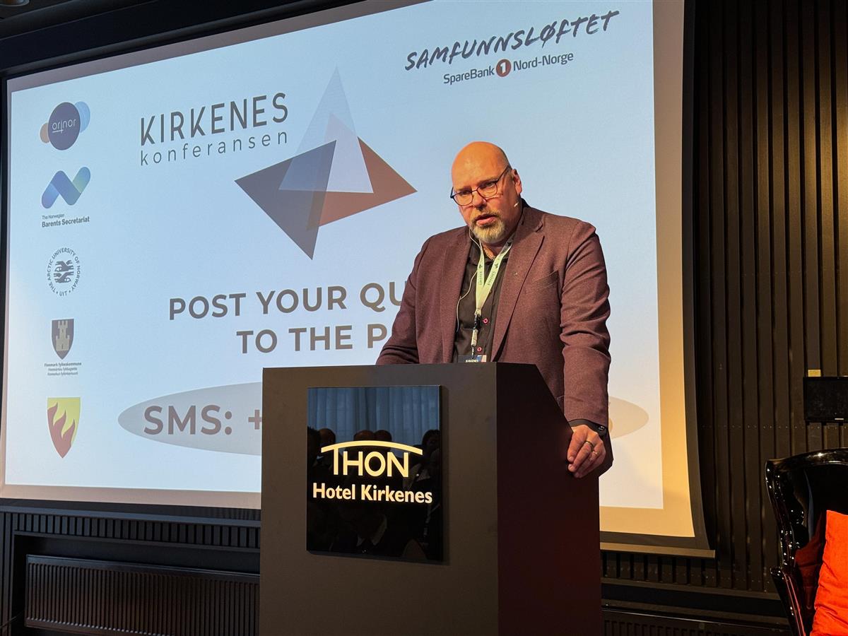 KLAR TALE: Fylkesordfører Hans-Jacob Bønå lanserte begrepet "Finnmarksskatt" fra talerstolen under Kirkeneskonferansen.