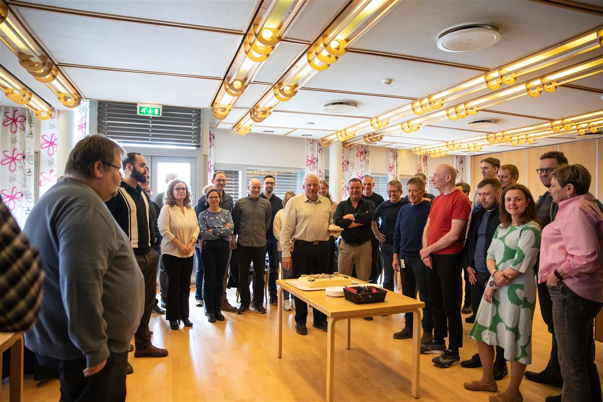 Torsdag 9. april ble Odd Walter feiret av kollegene i samferdselsavdelinga. Etter fire tiår med kunnskap, erfaring, godt humør og en solid porsjon integritet, venter nå en ny fase.