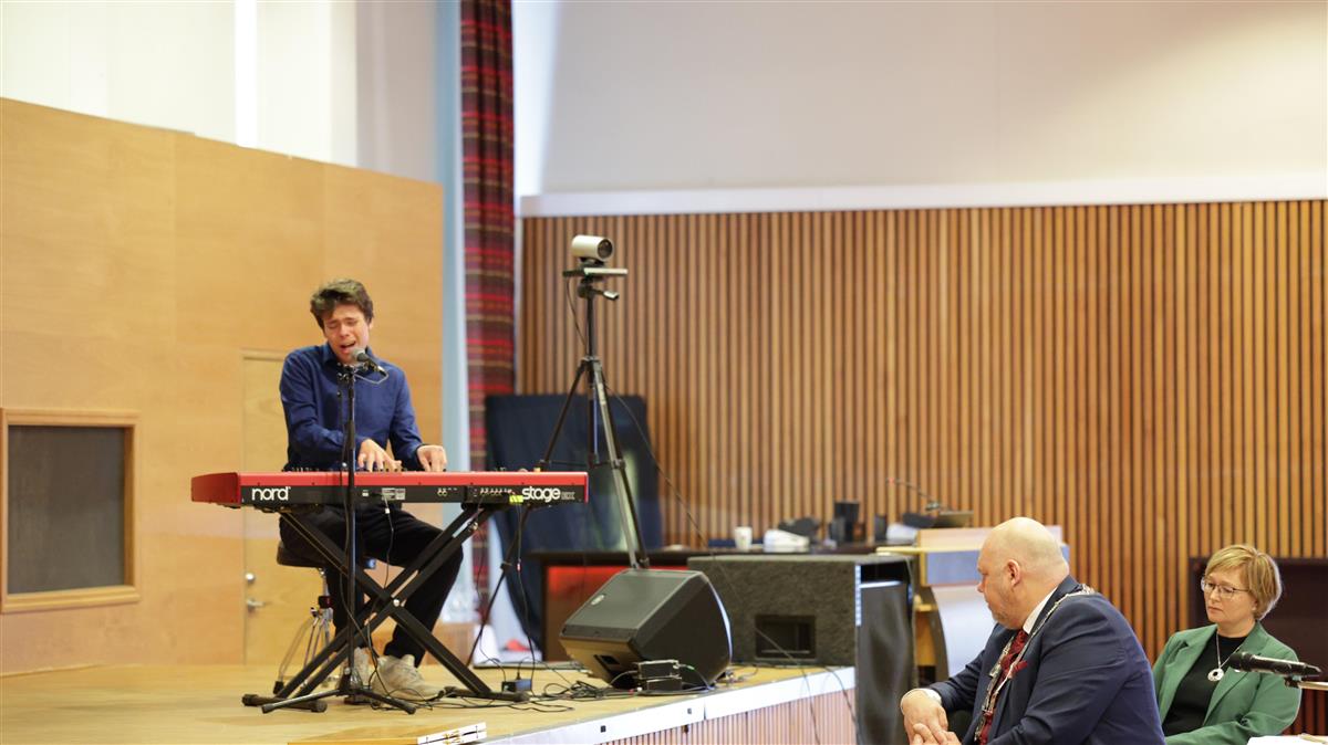 På fylkestinget sto også to andre begivenheter: Den første handlet om Per-Josef Idivuoma, bosatt i Kautokeino, som tidligere i år ble tildelt et toårig filmarbeiderstipend på totalt 300 000 kr. Han kunne ikke delta ved selve utdelinga da fylkesordfører Hans-Jacob Bønå holdt talen. - En stor ære å få filmarbeiderstipend, sa Idivuoma i takketalen på video.