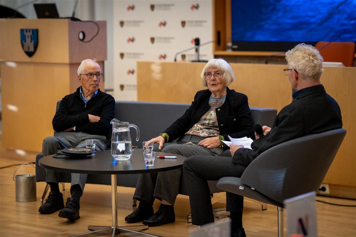MARKERING: Per Andersen og Gerd Dahl Nicolaisen under markeringen tirsdag. Til høyre sitter Trond Magne Henriksen, som ledet samtalen.