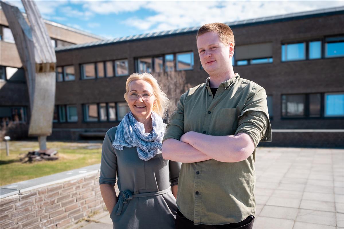 GLEDER SEG: Rita Henie Bakken, fylkesplansjef, sammen med kartansvarlig i fylkeskommunen, Jesse Jan van der Berg, gleder seg over lanseringen av arealregnskap Finnmark.