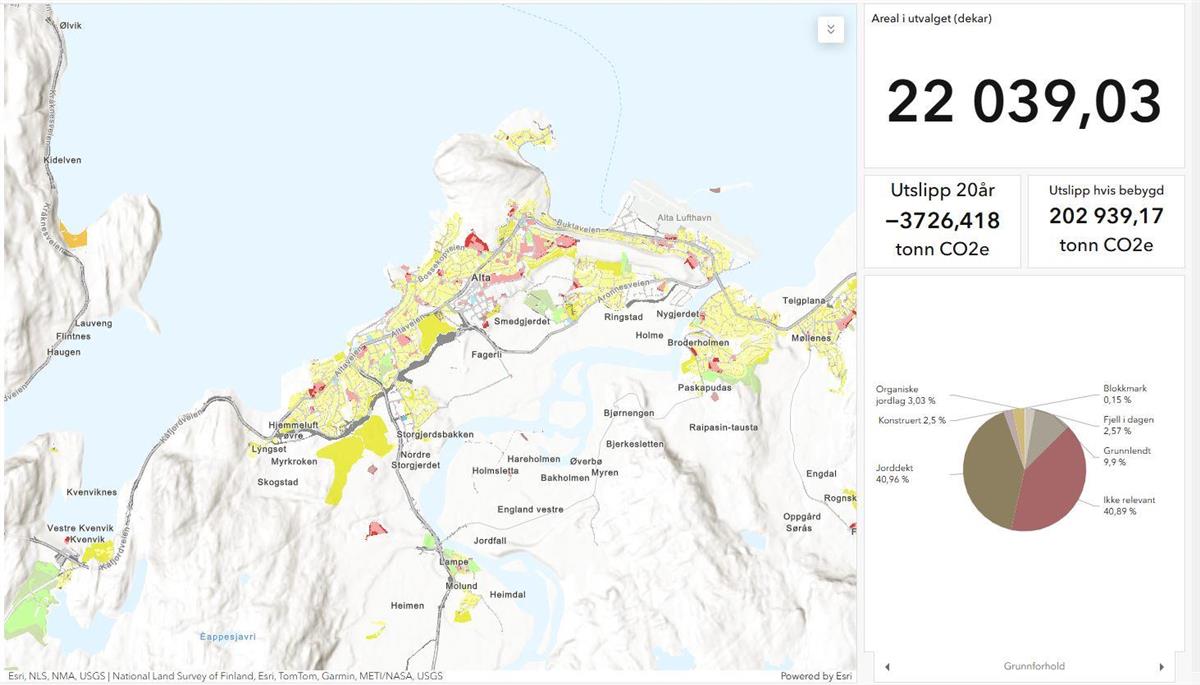 INTERAKTIVT: I Arealregnskap Finnmark får kan du se interaktive kart, slik som dette skjermbildet fra Alta.– Husk likevel at dette ikke er et bindende kart, og på grunn av feilkilder kan formålet være noe annet enn det som vises i kartet, påpeker van der Berg.