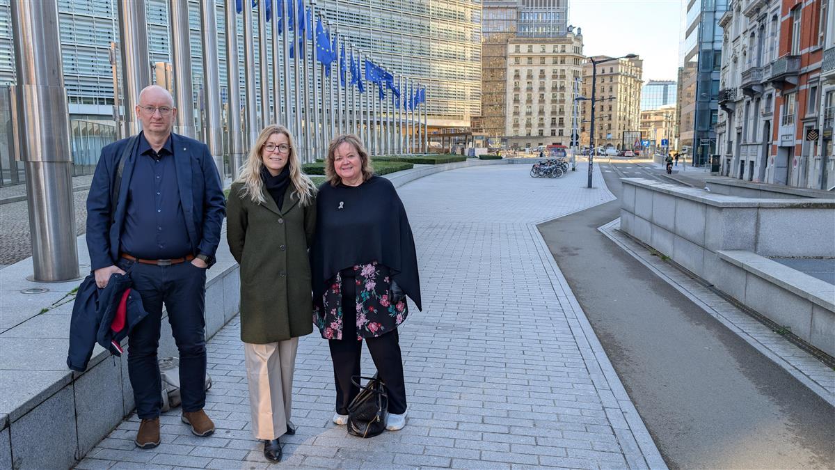 F.v.: samferdselssjef Jørgen Blix, rådgiver i Nord-Norges Europakontor, Janni Ekrem og Nina Danielsen (H), medlem av Hovedutvalget for samferdsel (HUS) i Brussel, Belgia – hovedsete for EU.