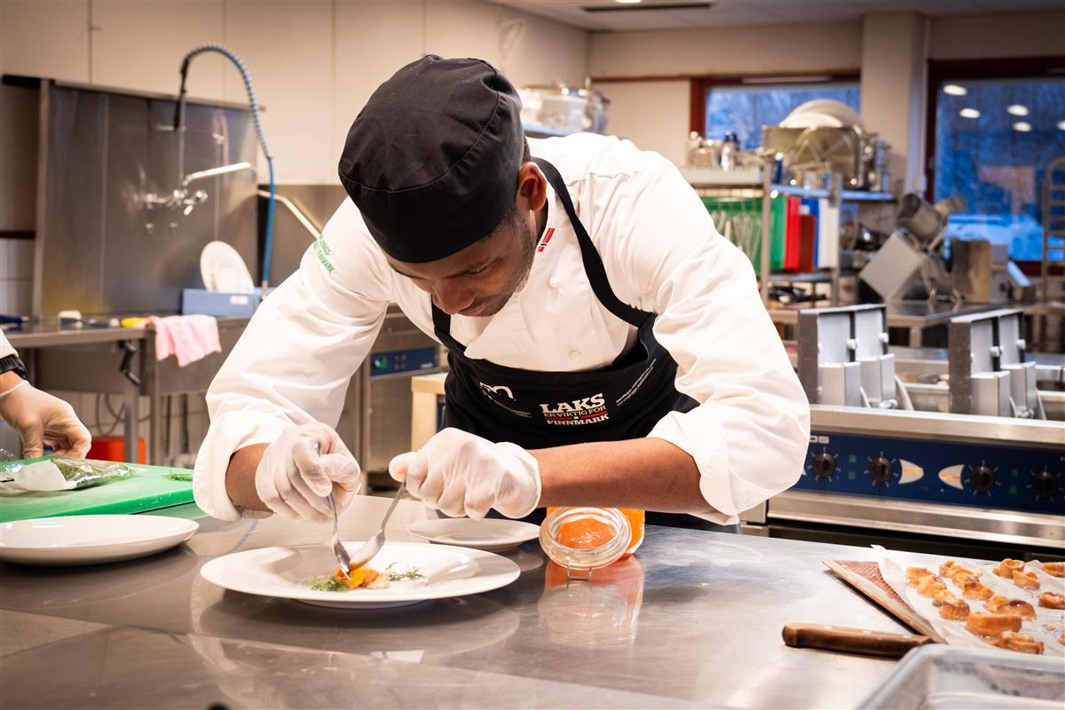 Sammen med medeleven på VG2 restaurant- og matfag ved Kirkenes videregående skole, Francis Dusabimana (22), pakker han i januar kokkehatten og reiser til en av verdens største mat- og landbruksmesser, Grüne Woche (GW) i Berlin.