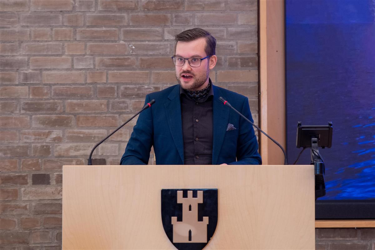 Fylkesordfører i Troms og Finnmark fylkeskommune Tarjei Jensen Bechs (Ap) tale til nye Finnmark fylkesting: