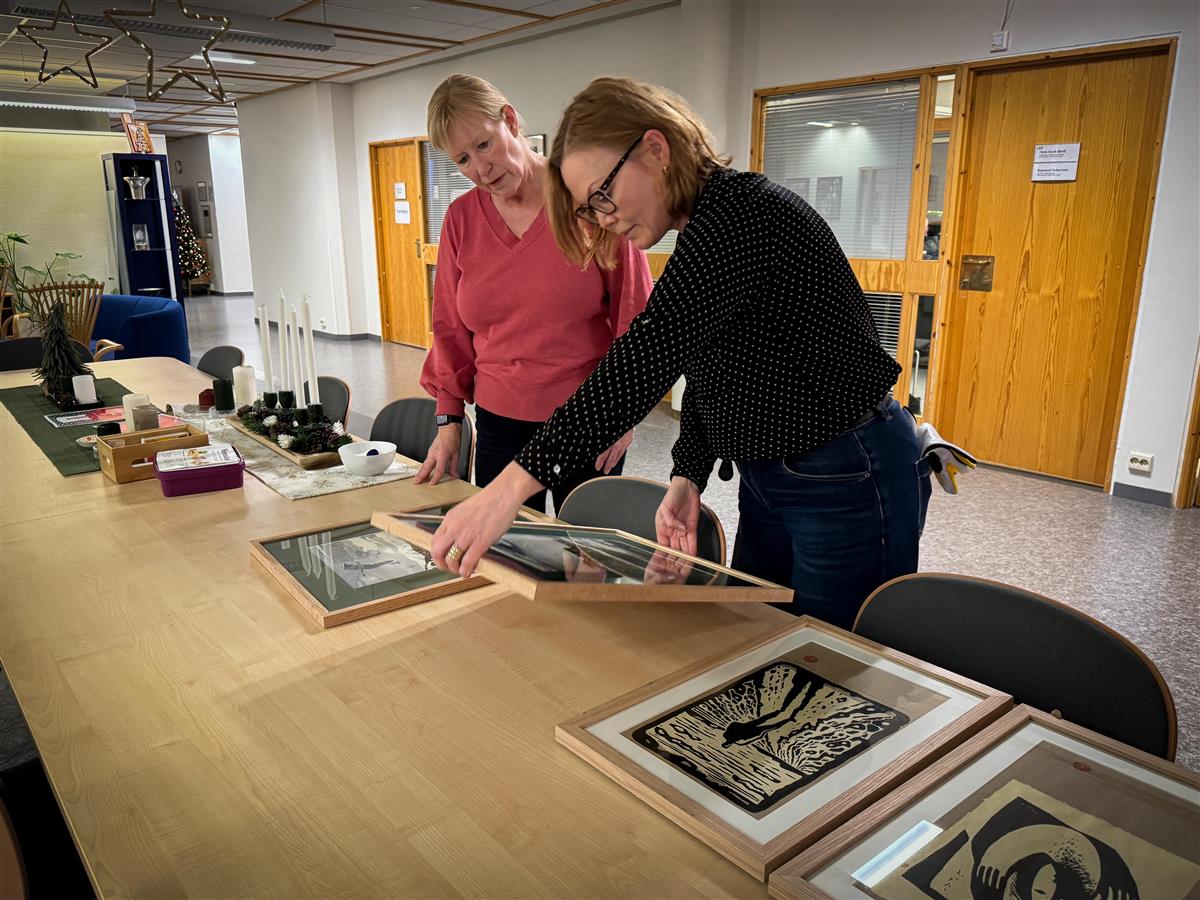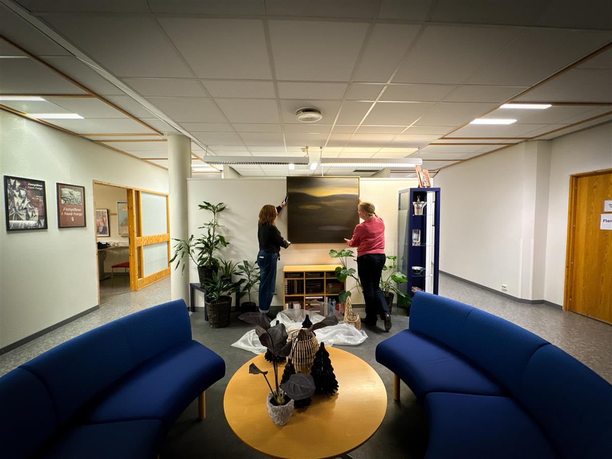 Etter at Synøve Persens kunstverk kom tilbake fra rammeverksted i Kirkenes, er det løftet ut i et fellesareal på Fylkeshuset slik at flere kan få glede av det.
