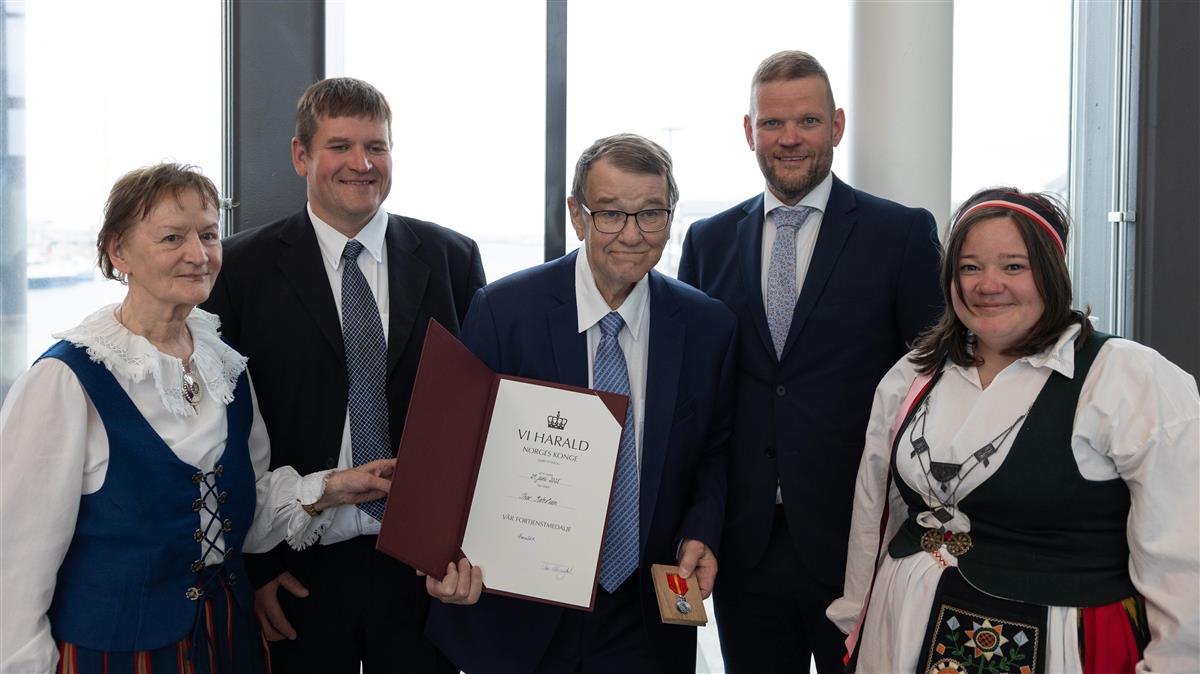 Medaljen ble overrakt av stortingsrepresentant og påtroppende statsforvalter Runar Sjåstad.