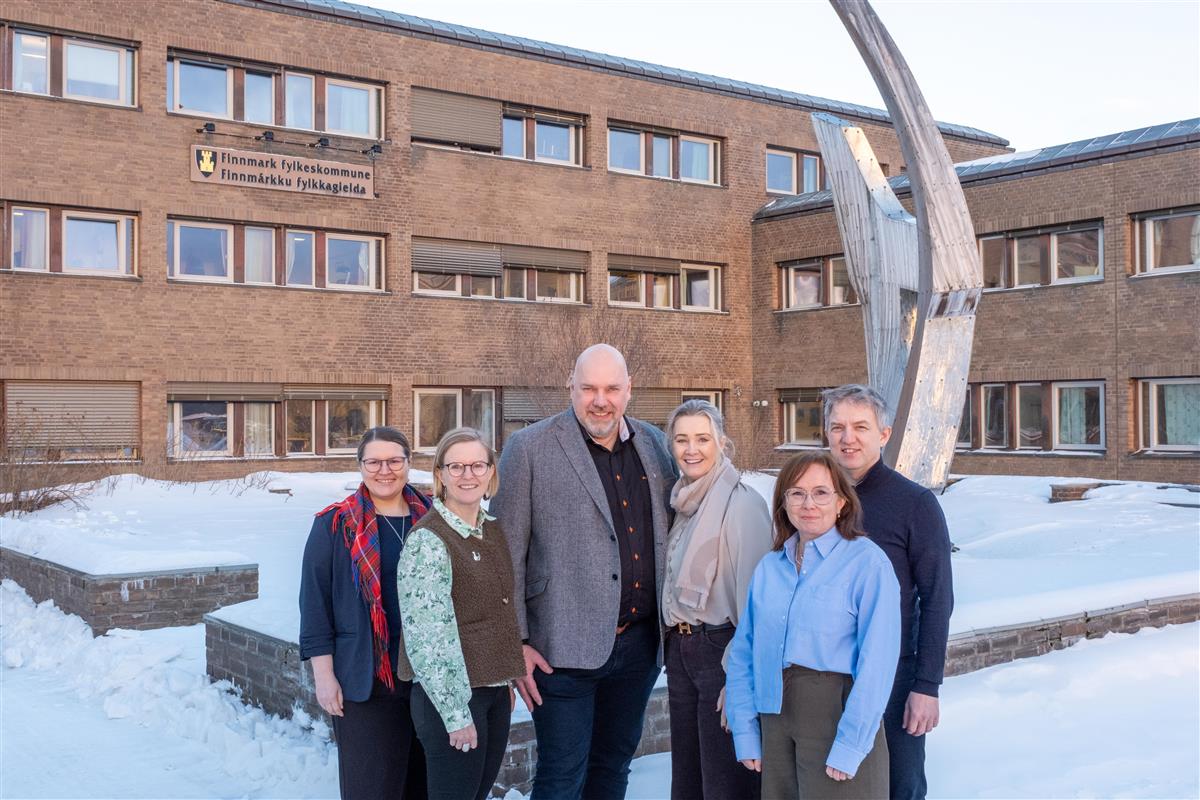 F.v. Solveig Ballo, Sápmi næringshage AS, Mona Halvari, Finnmark fylkeskommune, Hans-Jacob Bønå, fylkesordfører Finnmark fylkeskommune, Anne Berit Figenschau, Innovasjon Norge Arktis, Merete Susan Andersen, Innovasjon Norge Arktis, Kristian Wengen, Tinkr.