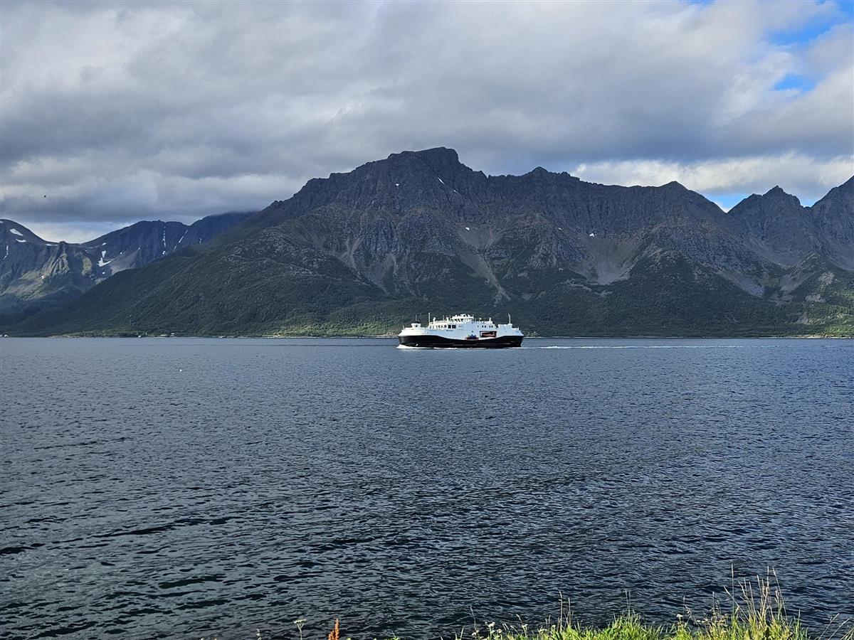 Ferge på vei til Øksfjord ferjekai, foreviget av samferdselssjefen. Fearja jođus Ákšovutnii, govven lea johtalushoavda
