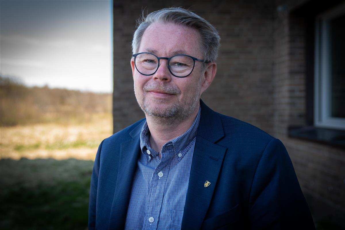 En mann med grått hår og briller står foran en murvegg. I bakgrunnen vises gress og busker. Han har på seg en blå skjorte og en blå dressjakke. - Klikk for stort bildeRaymond Robertsen (H), leder for hovedutvalget for kompetanse. Karoline Almås Sørensen/ FFK