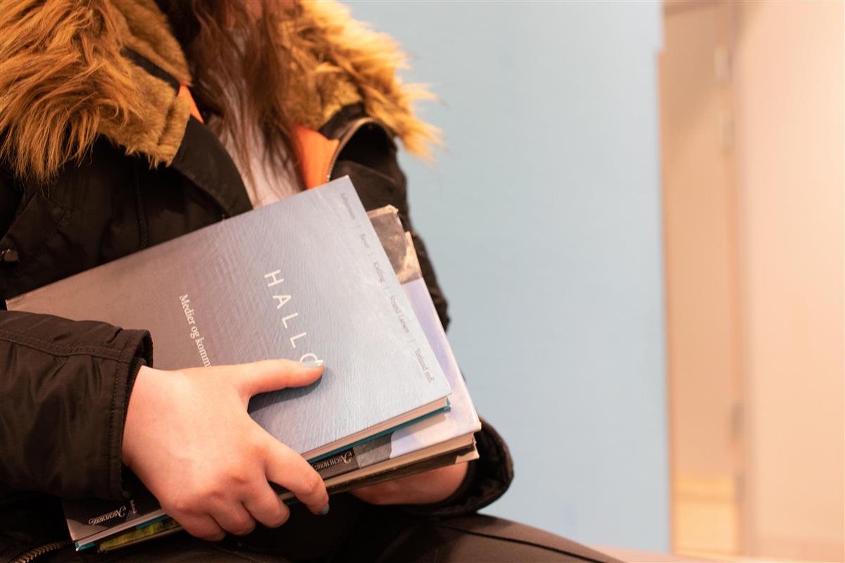 En elev går med bøker i hendene. - Klikk for stort bildeFORNØYD: Finnmark fylkeskommune er fornøyd med søkertallene til videregående opplæring. Kajsa Marie Johansen, Alta videregående skole