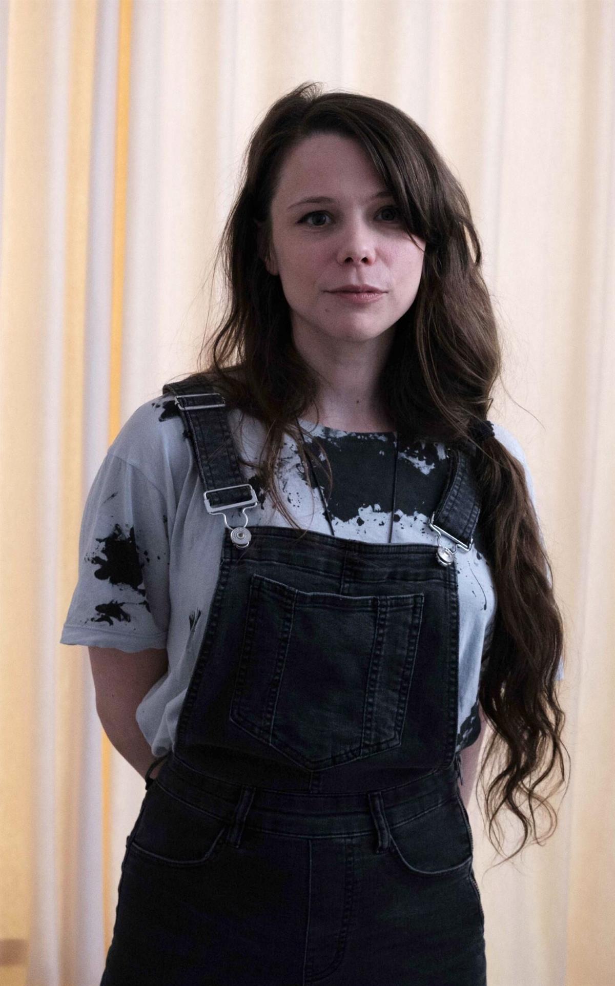 Dame med snekkerbukse og langt hår står med hendene bak ryggen foran en vegg. - Klikk for stort bildeIngeborg Wie Henriksen skal på 1 måneds opphold i Artist in Residency (AiR) Gjutar i Vantaa. Tarek Effat