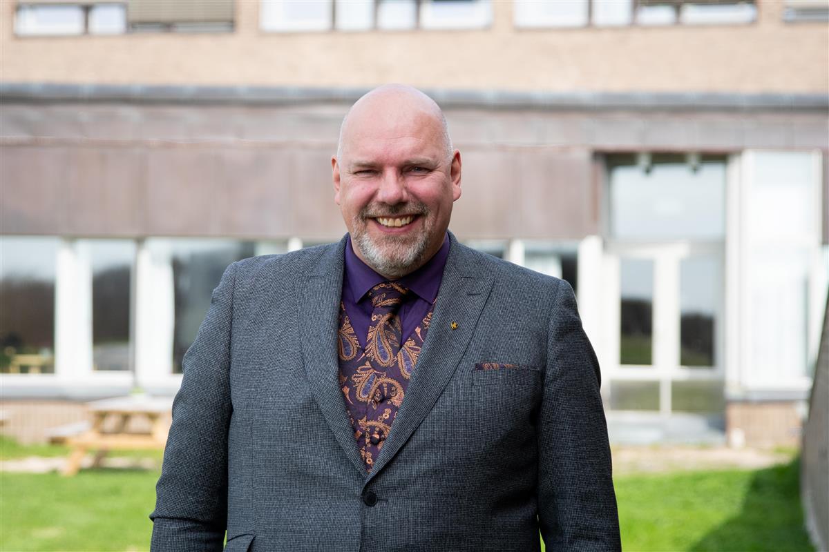 Mann i dress smiler til kameraet, bildet er tatt på sommerstid. - Klikk for stort bildeFylkesordfører Hans-Jacob Bønå (H). Karoline Almås Sørensen/FFK