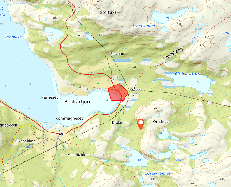 Fylkesveg 888, som går mellom Mehamn i Gamvik og Ifjord i Lebesby, er stengt i Bekkarfjord ved Geitelva fra onsdag 19. november kl. 18:00 til torsdag 20. november kl. 07:00.