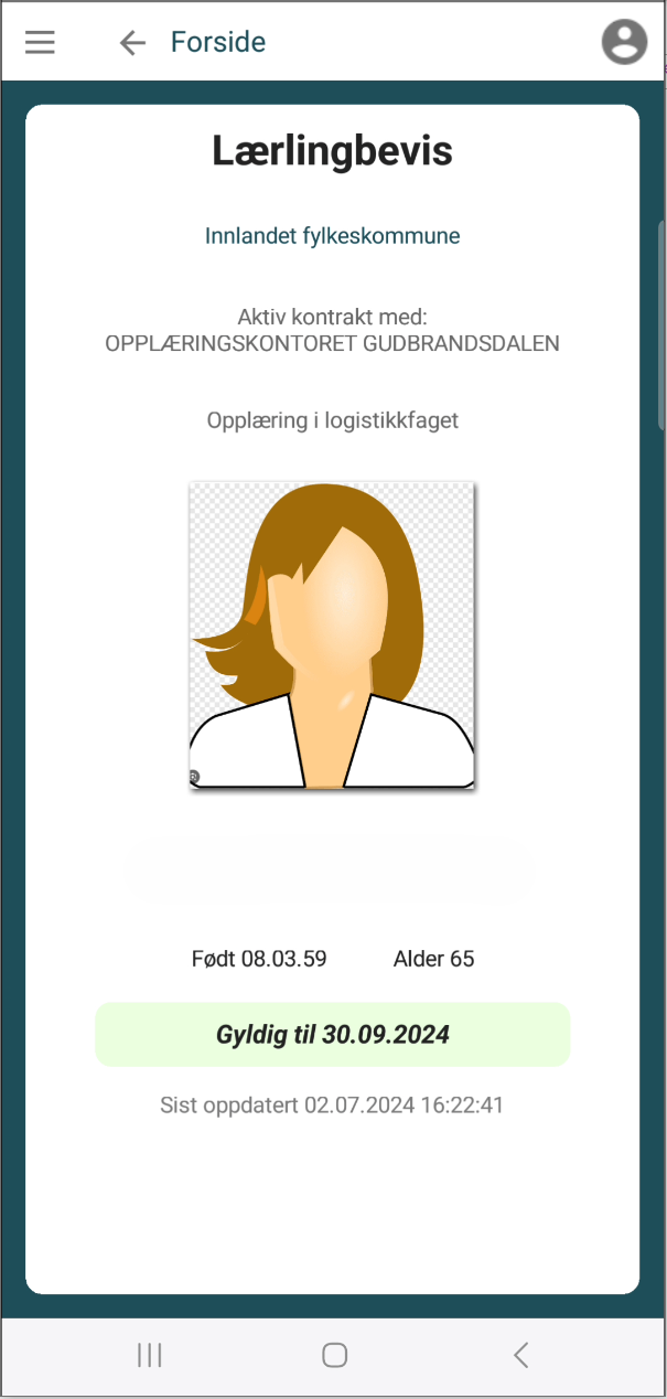 Her er et eksempel-bilde som viser hvordan lærlingbeviset vil se ut: