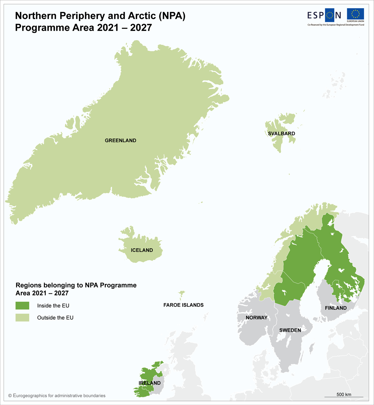 Kart over programområde for Interreg Nordlig Periferi og Arktis.
